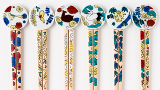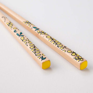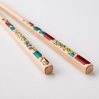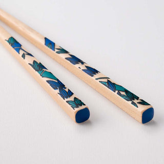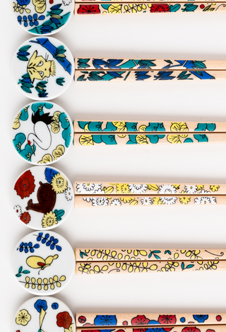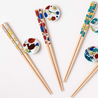 Crafted from white maple wood, these elegant chopsticks feature delicate silk-screened floral motifs inspired by the traditional porcelain technique, Kutani Yaki. When paired, they reveal a hidden crane on the reverse, matching the chopstick rest. A perfect blend of tradition and refined beauty for your table.