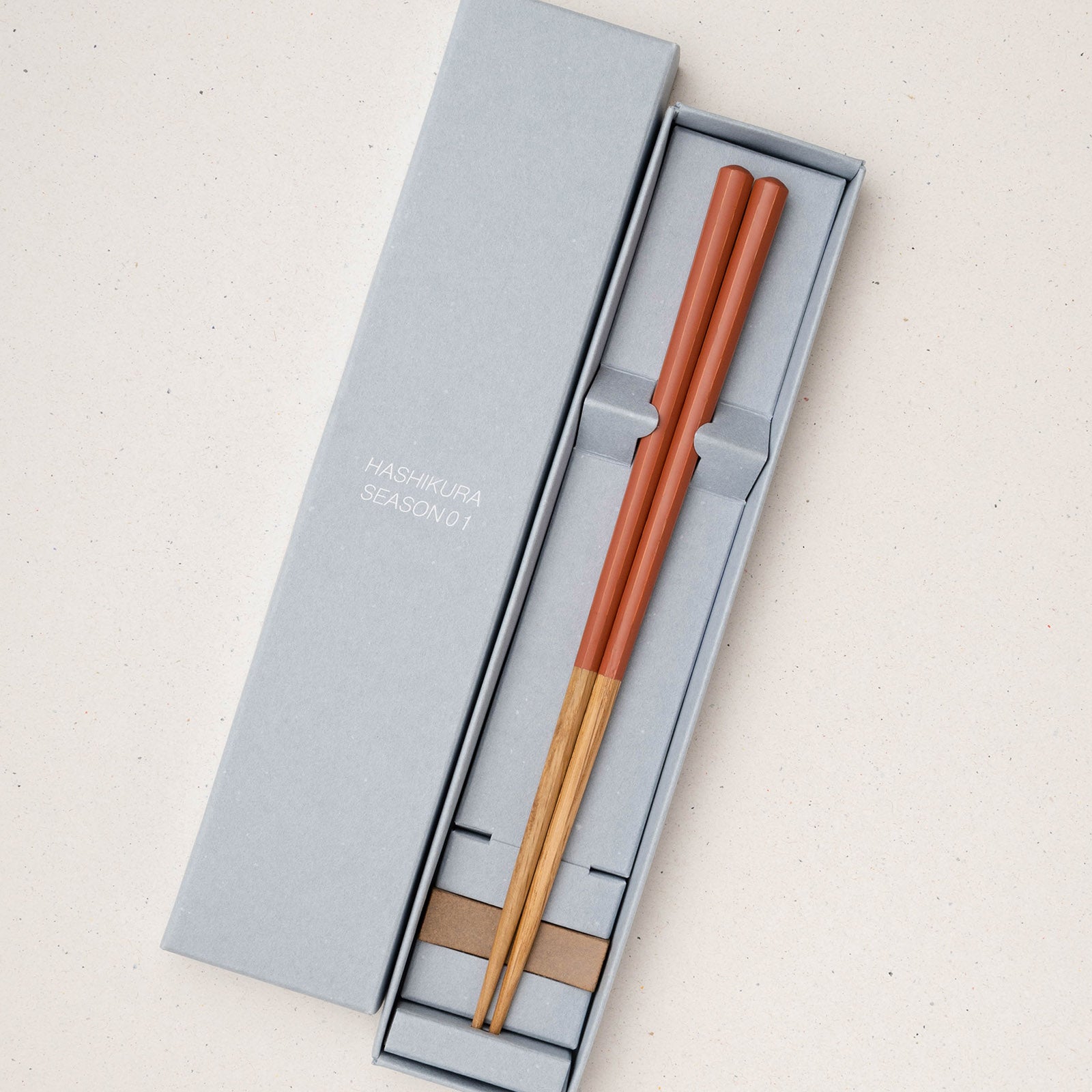The Momijiiro chopsticks from our Hashikura Season 01 collection are inspired by the vibrant colors of maple leaves in Fukui during the crisp fall season. These chopsticks capture the subtle beauty of Obama City’s changing seasons and honor the centuries-old tradition of Wakasa lacquerware. Handcrafted to add a touch of understated luxury to your everyday table, they elevate your dining experience.